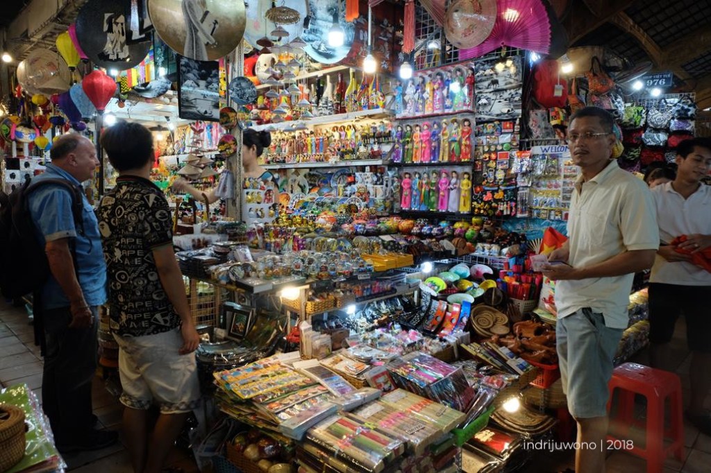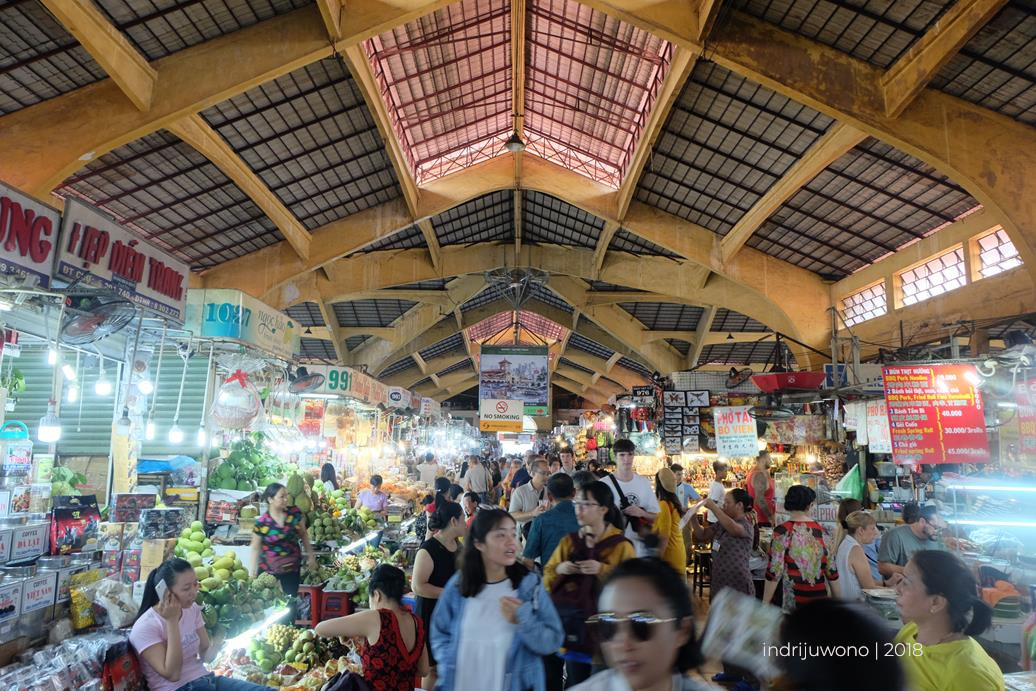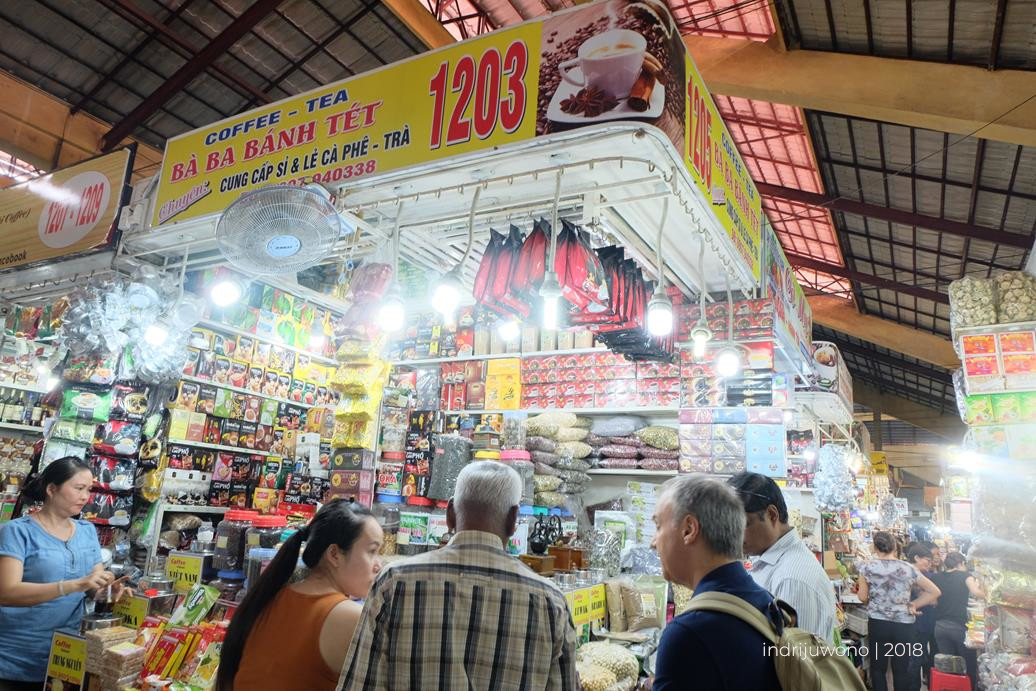 Sebelum balik ke hostel, aku kembali mampir ke Ben Thanh Market untuk membeli suvenir magnet kulkas dan boneka meja untuk oleh-oleh di Indonesia. Di siang hari kondisi pasarnya cukup terang dan banyak sekali orang dan turis juga berbelanja di sini, mungkin turis lokal dari kota-kota lain.