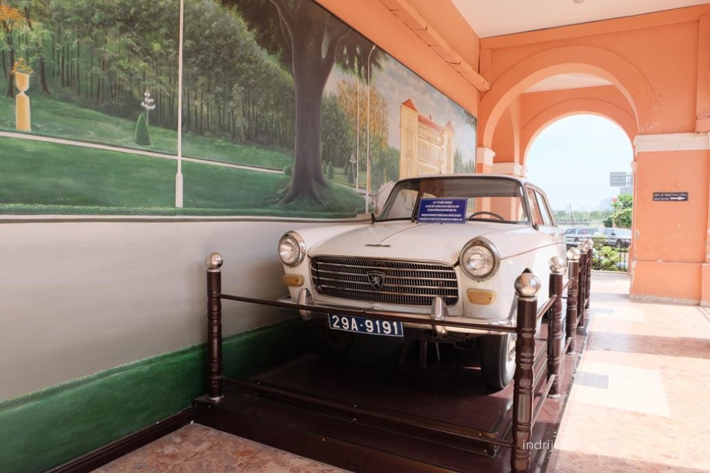 Sebenarnya aku berjalan kaki karena nggak paham jalur kendaraan di sini, jadi setelah dimapping rasanya masih 5-6 km ya dijalani sajalah dengan berjalan di sepjang sisi sungai hingga ketemu Tượng Nguyễn Tất Thành, salah satu tengara historis juga yang sekarang difungsikan menjadi museum dengan mobil-mobil tua dan lukisan yang menjadi koleksinya. Sebenarnya di sini juga disewakan pakaian adat Vietnam yang berupa blus panjang dan celana longgar serta bertopi caping, namun mengingat bentuk badanku sudah tidak seperti masa SMA dulu, jadi aku memilih untuk pindah lokasi saja.
