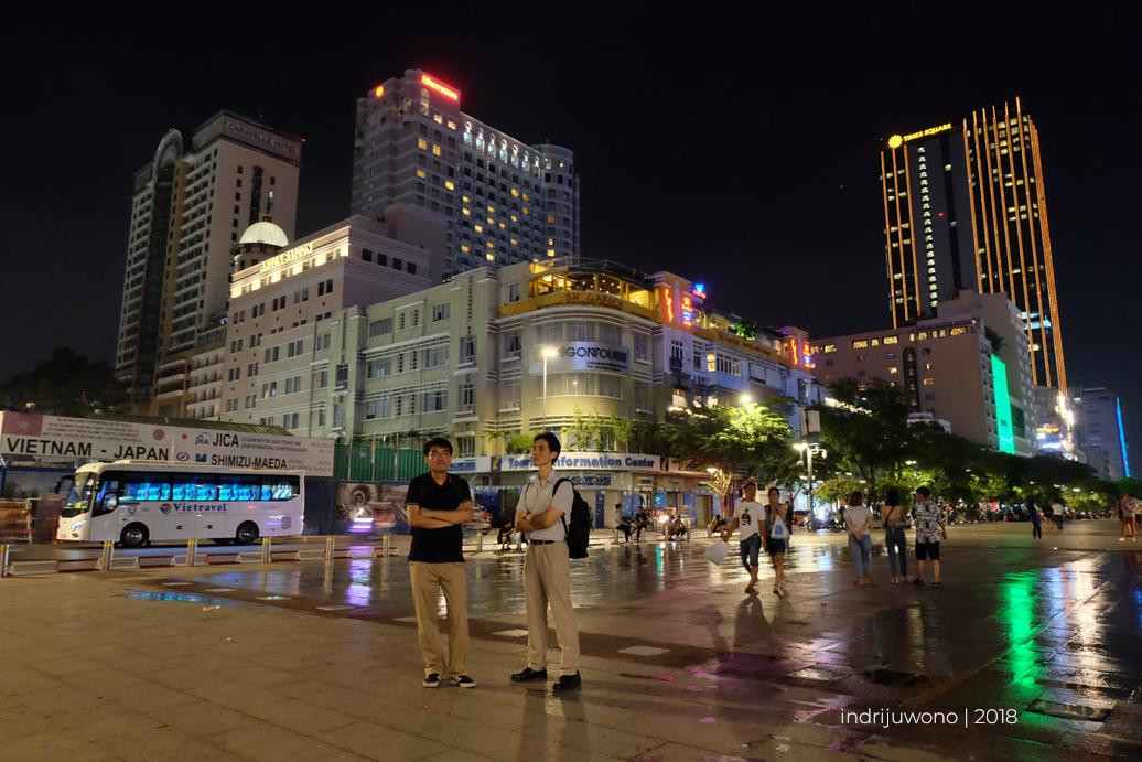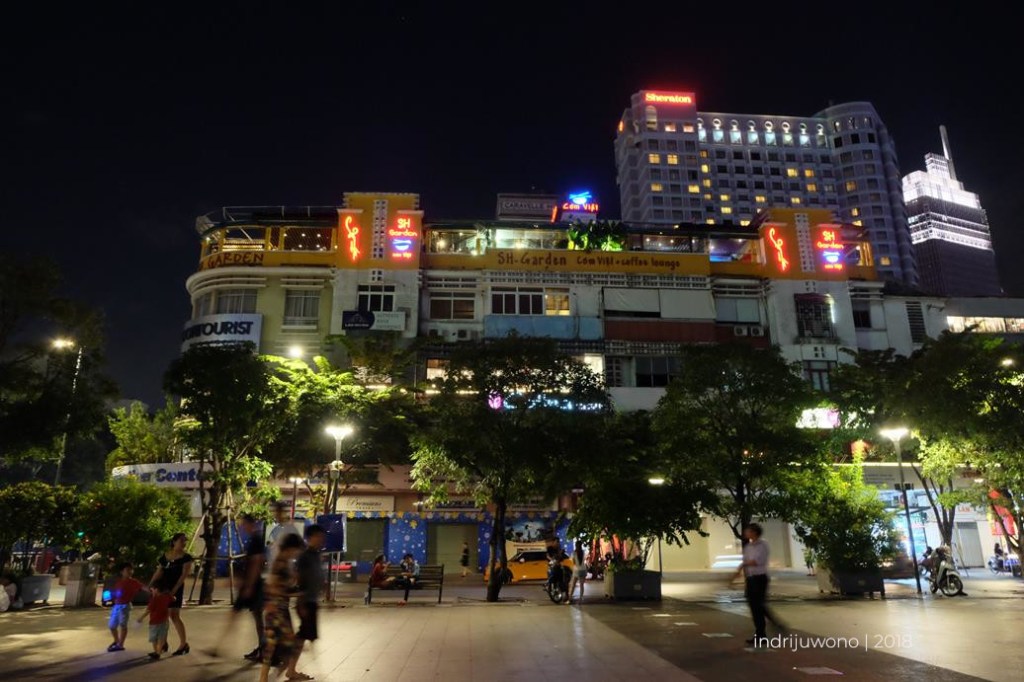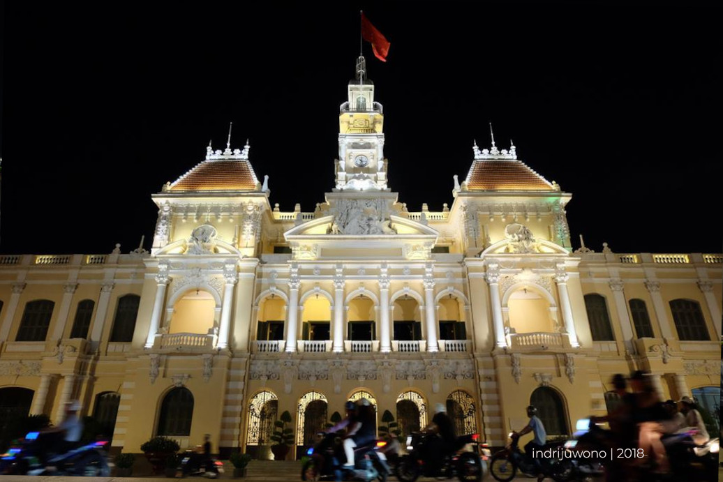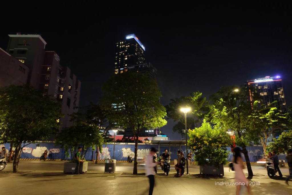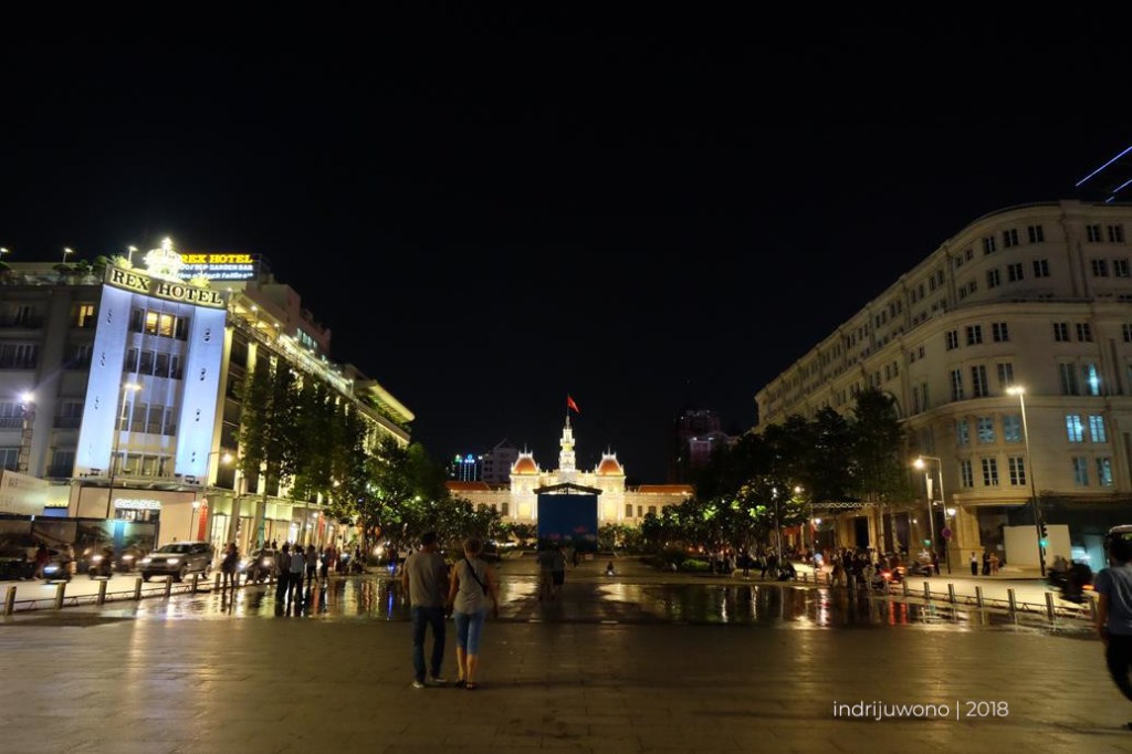 Aku mampir di depan People’s Committee of Hồ Chí Minh City , UBND Thành phố Hồ Chí Minh yang berada di depan plaza besar Nguyễn Huệ Boulevard square. yang masih ramai dengan orang-orang yang menghabiskan malam sambal menikmati lampu-lampu kota bukti modernitas yang berdiri di antara bangunan-bangunan lampau. Rasanya iri melihat negara ini, yang memang industrinya menjadi saingan Indonesia, merawat sejarah dan arsitektur dengan sangat baik dan cantik sehingga dinikmati di malam hari pun nyaman di mata.