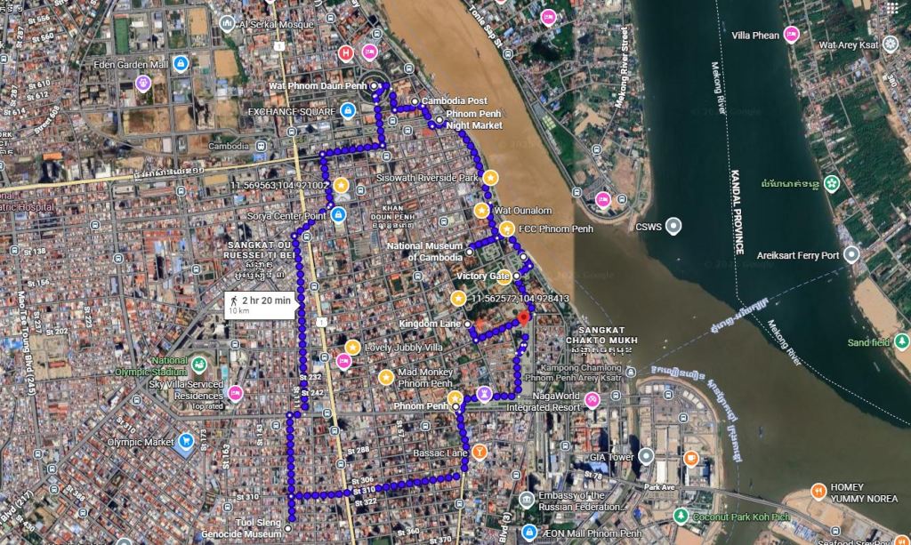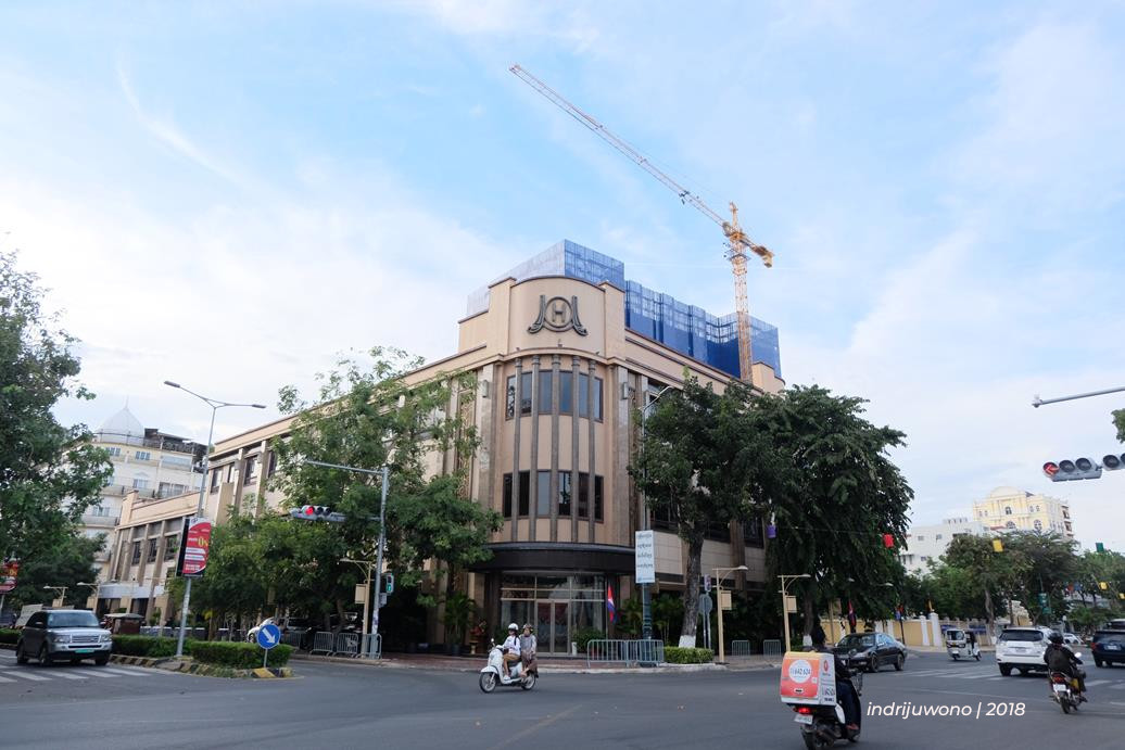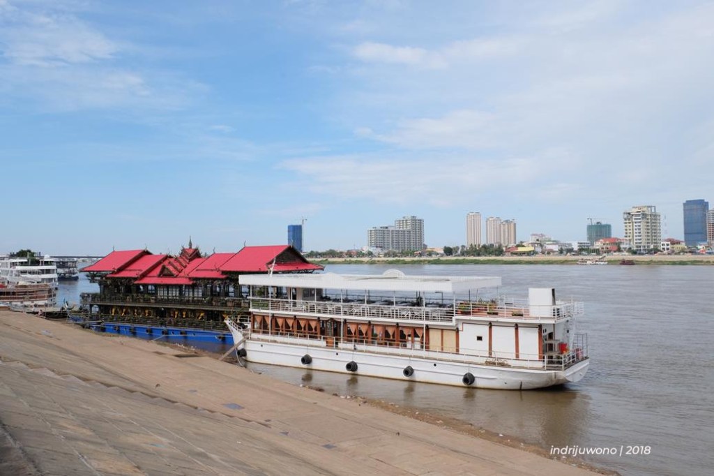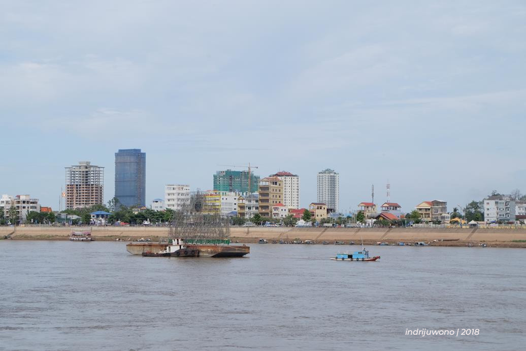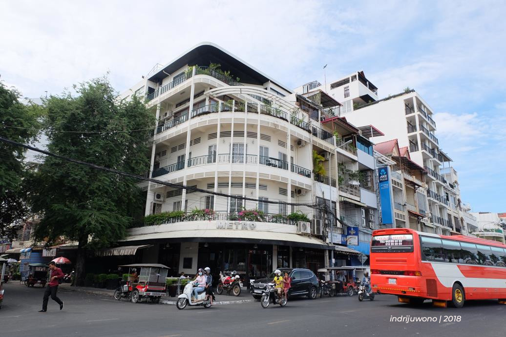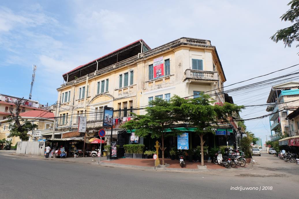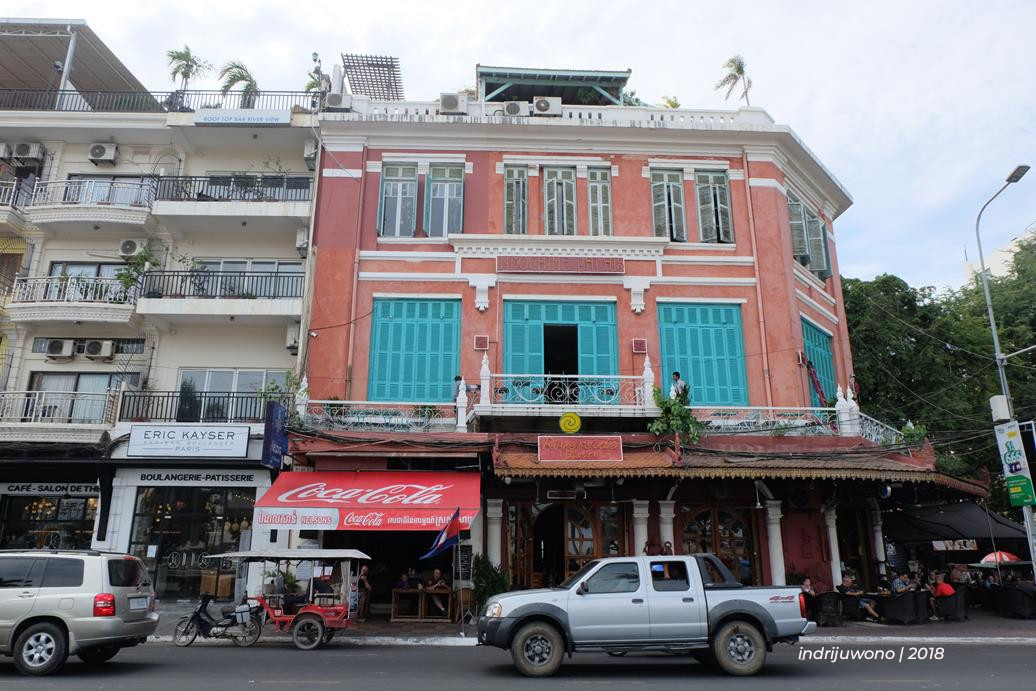 Kota Phnom Penh di siang hari tampak santai, tak seperti ibukota negara pada umumnya. Cuma ada tuktuk, mobil keluaran lama, sepeda motor, dan orang berjalan kaki. TIdak banyak kerumunan, kemacetan atau kesibukan lainnya. Dilihat dari modelnya, bangunan-bangunan ini berdiri di tahun 80-an atau kurang, karena tidak tampak modernisasi di sisi ini. Ruko empat lantai atau lima dengan gaya retro yang sudah berubah menjadi hotel atau dining place.
