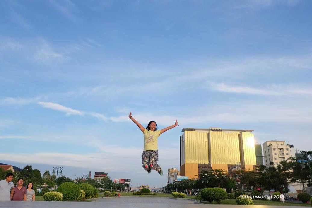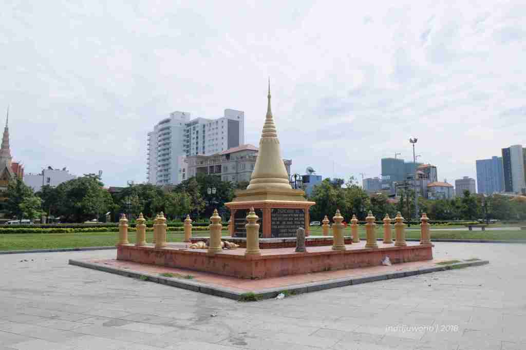 Karena capek, aku memutuskan untuk naik tuktuk ke Tuol Seng Museum, namun sayangnya karena sudah terlalu sore, jadinya sudah hampir tutup nggak bisa masuk. Jadi aku beralih ke Independence Statue dan ke taman Statue of His Majesty Preah Bat Samdech Preah Norodom Sihanouk yang berwarna emas berkilauan yang cerah ditimpa sinar matahari sore. Malah taman ini banyak anak kecil yang bermain di situ.