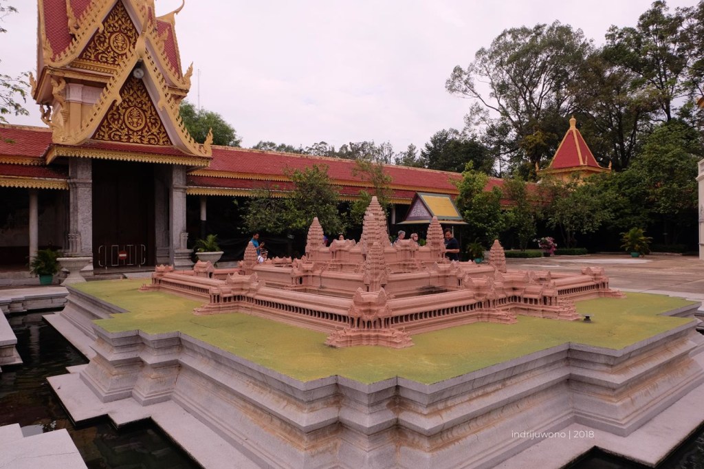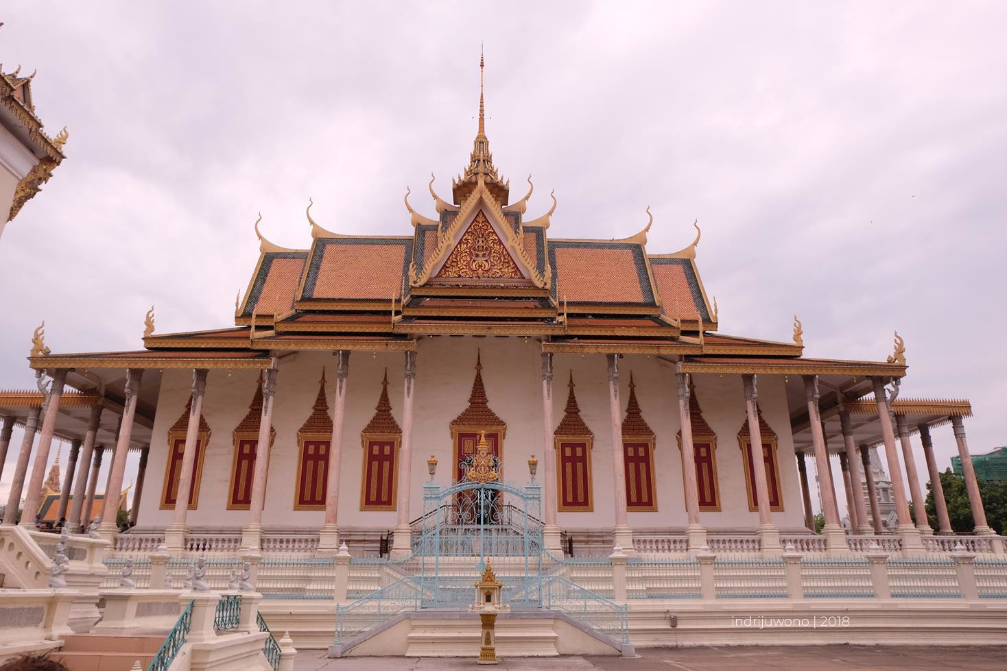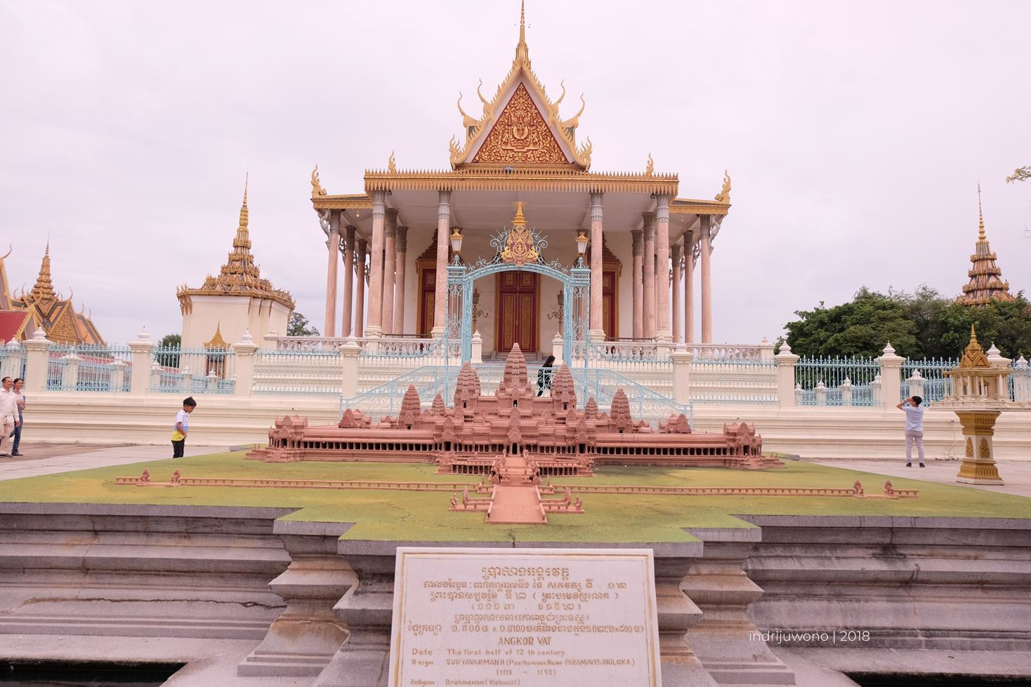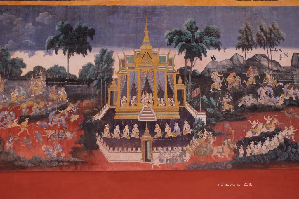 Pada bagian lainnya yang dipisahkan oleh dinding, terdapat Kompleks Pagoda Perak dengan satu bangunan kuil di tengahnya yang berpagar digunakan sebagai tempat untuk beribadah dan menyimpan harta pusaka kerajaan. Bangunan ini dikelilingi oleh sejumlah pagoda berwarna perak dengan hiasan kepingan keramik yang berkilau. Bagian dinding yang mengelilingi area ini ditutupi dengan lukisan kisah epik Reamker (Ramayana). Karena penasaran akan bagaimanakah endingnya, aku mengikuti seluruh dinding sampai tamat. Sama saja ternyata, Sinta masuk ke dalam api. Yang menarik, di sini terdapat juga miniatur Angkor Wat yang merupakan istana lama dari kerajaan Khmer di masa lalu, sebelum didorong untuk berpindah-pindah hingga pada tempatnya di Phnom Penh ini.